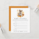 Cuta tarjeta de juego para adivinar la ducha de bebé con un ilustracion acuarela de un cachorro de lobo rodeado de hojas caídas en tonos naranja, rojo y amarillo en la parte superior de la tarjeta. Personalice la tarjeta con las instrucciones del personalizado, los criterios para adivinar, el nombre de la futura madre y la fecha de la ducha de bebé. El diseño se coordina con nuestra colección de duchas para bebés de animales de la Tierra de Tubos.