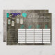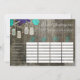 Este gran juego de scattergories para despedida de soltera rústica hará que tus invitados sonrían en un abrir y cerrar de ojos. Este juego de fiesta presenta un fondo de madera de granero rústico con flores turquesas y moradas en la parte superior con frascos de mason colgando de ellas. Dentro de los frascos de mason están las palabras "amor" en varios colores. Un gran juego de fiesta de boda del que los invitados hablarán durante años.