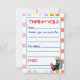 Esta divertida tarjeta de agradecimiento es ideal para niños pequeños. La parte frontal tiene una máquina de arcade sobre un patrón cuadrado multicolor. En la parte posterior hay un mensaje "rellenar los espacios en blanco" para que su hijo lo personalice.