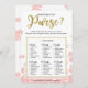 Este moderno floral "¿Qué Hay en Tu Bolso?" presenta un fondo floral rosa con salpicaduras de purpurina dorada. El texto está escrito en una mezcla de una fuente de caligrafía juguetona y una fuente moderna sin serif, esta tarjeta de ¿Qué Hay en Tu Bolso? está personalizada con el nombre de la futura novia y la fecha de la Despedida de Soltera.