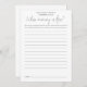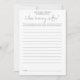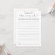 Juego de ducha de novia cuya tarjeta blanca de memoria es negra. Un divertido juego de fiesta para su Bridal Shower con este sencillo diseño tipográfico en blanco y negro. Tus invitados escribirán su memoria favorita con la novia para ser quién luego lo leerá y todos adivinarán quién es su memoria. Su nombre y la fecha están sutilmente teñidos en segundo plano, con líneas en las que sus invitados pueden escribir sus anécdotas. El nombre del juego está en un guión elegante. Personaliza fácilmente el resto del texto.