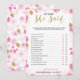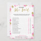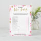 Un delicado juego moderno de ducha nupcial floral "Él dijo Ella dijo" , el diseño presenta un patrón floral dorado y rosa, esta tarjeta está personalizada con el nombre de la futura novia y la fecha de la ducha.
