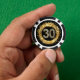El diamante número 30 Relieve metalizado purpurina de oro confetti negro y oro. ¡El favor de la fiesta por el 30 cumpleaños! Productos a juego disponibles. Póngase en contacto con el diseñador en: cheryl@cheryldanielsart.com para solicitar este diseño en otro producto. Utilice el botón IT PERSONALIZAR para añadir su texto a la parte posterior de este chip de póquer.