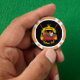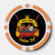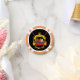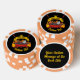 Parrilla barbacoa sobre carbón vegetal en llamas, banner de desplazamiento con texto personalizado sobre el tenedor y la espátula. Color de fondo personalizado. Texto personalizado en ambos lados.