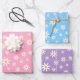 Flores de margarita blanca con pardos amarillos en tres colores pastel: rosa, morado claro / malva y azul pálido.