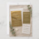 Eleva tu día especial con este lujoso conjunto de invitación de boda de espejo dorado en acrílico. Con un acabado de espejo dorado reflectante con caligrafía grabada, esta elegante suite de boda incluye la invitación principal, la tarjeta de RSVP y la tarjeta de detalles. Diseñado con un estilo minimalista moderno, acentos de eucalipto y detalles rústicos de lujo, es la elección perfecta para bodas sofisticadas y atemporales. Ideal para parejas que buscan una invitación única y de alta gama para impresionar a los invitados.
