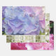 Tres hojas elegantes de papel de regalo que presentan fotos cercanas de las flores de hortensias blancas, hortensias de azul a rosa y rododendro rosa para ofrecerle hermosas opciones. Este papel de regalo de moda es especialmente apropiado para elegantes bodas de verano, fiestas de despedida de soltera y cumpleaños.