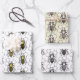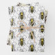 Abeja amarilla y negra sentada en el peine de miel. Imagen en patrón de baldosas escalonadas sobre fondo blanco. La segunda hoja tiene abejas blancas y negras sobre fondo amarillo pálido. 3.ª hoja es imagen de abeja negra en blanco.
