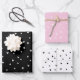 Añade un toque especial a tus regalos con este pequeño papel de envoltura de corazón. Este juego de envolvimiento de regalo viene como: - una hoja con fondo rosado y corazones blancos - una hoja con fondo negro y corazones blancos - una hoja con fondo blanco y corazones negros