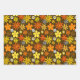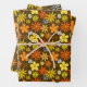Patrón floral estilo de los años 70 Papel de envolver en marrón, naranja, amarillo y blanco.