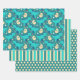 Un patrón divertido con un bebé T-Rex y un huevo Dino roto. Las rayas y los puntos de polka correspondientes completan el conjunto.