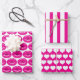 Patrón de labios rosados atractivos y adorables con rayas y corazones correspondientes.