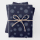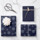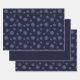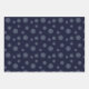 Una mandala de círculo concéntrico de color azul claro con puntos azules brillantes y de estrellas doradas esparcidos entre las capas hace que sea divertida, un diseño que recuerda a un cielo estrellado. Dos hojas de este conjunto presentan la mandala esparcida a través de un fondo azul profundo, mientras que la tercera hoja presenta un patrón de puntos de polka desvanecidos en el mismo fondo azul para darle opciones y variedad para su envoltura de regalo o proyectos DIY.
