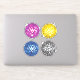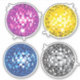 Un conjunto de cuatro pegatinas de bolas de disco, entre ellos una bola de oro plateado, rosa y azul. Perfecto para una fiesta temática de los años 70 o para una discoteca soltera.