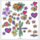 Conjunto de diseños de temática primaveral. Corazones, rosas, mariposas, maricas, libélulas. En un lindo estilo artístico de doodle.