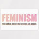 Hacer una declaración poderosa con este **Conjunto de Pegatinas de feminismo**, con la frase impactante: **"Feminismo: la noción radical de que las mujeres son personas."** Este paquete incluye **tres colores únicos** para cada estado de ánimo y entorno: * :corazón verde: **degradado azul a verde** en un **fondo negro** * :morado: **Rosa y morado* en un **fondo negro** * :amarillo_corazón: **amarillo y rosa** en un **fondo blanco** Cada diseño está impreso en material pegatina duradero y de alta calidad, perfecto para laptops, botellas de agua, computadoras portátiles o donde quieras decir la verdad. Feminista, fuerte y sin arrepentimiento. #FeminismStickerSet #RadicalFeminism #EmpowermentStickers #SpeakYourValues #EqualityInColor #StickerPackPower #LoudAndFeminist #GraphicVoices #ActivistArt #BoldMessaging