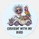 Golpear la carretera con estilo con este divertido pegatina "Cruissin' con mi pájaro". Con un tipo frío conduciendo un auto con un pájaro colocado casualmente en el asiento trasero, este diseño juega con el doble significado de "pájaro", ya sea un amigo con plumas o un alguien especial. Perfecto para los amantes de los coches, los aficionados a las aves o cualquiera que disfrute de un juego de palabras inteligente, este pegatina añade personalidad a los ordenadores portátiles, botellas de agua y, por supuesto, a su paseo. Viene en un conjunto de 6 ó 20.