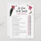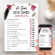 Presentamos nuestra moderna y divertida tarjeta de juego "Él dijo Ella dijo", perfecta para un tema de Despedida de Soltera con Vino. Con su elegante diseño burgundy, este juego añade un toque de sofisticación a tu celebración, ya sea una despedida de soltera, fiesta de soltera o evento de boda. Prepárate para jugar y reír con tus invitados mientras disfrutas del vino antes de los votos con este entretenido juego. Además, todas las letras son personalizables para adaptarse a tu estilo personal y detalles del evento.
