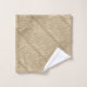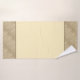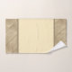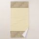 La elegante toalla de baño es de arena ocre y mantequilla amarilla. Se recorta con un patrón de borde que parece fluir agua. Este patrón proviene de una cerámica hecha a mano para el cuarto de baño. El patrón se llama "Flujo". Tiene un aspecto húmedo debido al brillante acristalamiento que se usó en la baldosa. Busca la baldosa en mi categoría de cerámica. Se puede embaldosar el cuarto de baño. Diseño de Oregon Tile maker, el Día de Fay Jones.