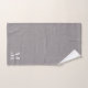Toalla de baño monogramada personalizada en blanco y gris con un guión y una letra serif en un fondo gris de lino falso. Sencilla elegancia. Refresca la decoración del baño con un estilo tipográfico minimalista.