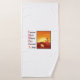 Este juego de toallas de baño muestra el acrónimo de Cristo en la escritura de un significado además de la escena matutina de la resurrección que presenta el amanecer y tres cruces en la colina y la tumba vacía con la piedra rodada y la mortaja vacía del Jesús levantado.
