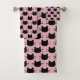 Sencilla silueta de cabeza de gato negro patrón repetitivo diseño toalla de baño Set con color de fondo de personalizable para coincidir con la decoración del baño.