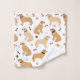 Perros Cute Golden Retriever con abrigos oscuros y ligeros se sientan y se paran con huesos de perro dispersos y huellas de aletas sobre un fondo blanco.