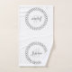 Añade un toque elegante a la decoración de tu baño con un juego de toallas de un monograma grisáceo decorativo. El diseño del conjunto de toallas incluye un círculo decorativo que se puede personalizar con tu nombre y monograma. También hay artículos de regalo adicionales disponibles con este diseño. Si necesitas ayuda para la personalización, por favor contacta conmigo directamente.