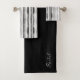 Conjunto de baños monogramados con patrón de acuarela rayado en blanco y negro.