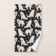 Los perros de los grandes Pirineos se sientan y se paran con huellas de pata y patrones de huesos de perro.