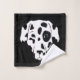 Toalla de baño de diseño de perro dálmata en blanco y negro con el color de fondo del personalizable que se corresponde con la decoración del baño.