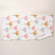 Este juego de toallas incluye un lavabo de oro, una toalla de mano de plata y una toalla de baño con un diseño Boho de tres hojas, junto con tres puntos debajo de ellas en oro rosa, oro y plata.