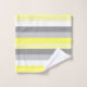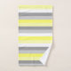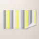 Toalla de baño de rayas amarillas, blancas y grises. Tonos alegres de tonos amarillos, grises mudos y decoración de baño a rayas blancas. Por celeste@khoncepts.com