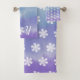 Este set de baño incluye una toalla de mano con la palabra Alegría con un copo de nieve en lugar de la letra "o". La toalla de baño y el paño de lavado son de color acuático, con tonos azules y púrpura y con un patrón de copos de nieve. Deje que esta colorida toalla de baño exprese la alegría que siente en Christmastime.