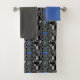 Este conjunto de toallas de diseño geométrico fue creado a partir de una de mis pinturas originales. Creé esta toalla para el baño de mi esposo porque el aspecto es masculino y atrae su gusto en la decoración de casa. También creé una cortina de ducha, la encontré en mi colección Bed and Bath. Coordine esta toalla con el acento de color negro, gris o azul mano o con el paño de lavado como se muestra. Dale esta toalla a él para que haga un cambio en el hogar o un regalo de cumpleaños.