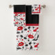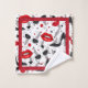 Los íconos clásicos negros, blancos y rojos de los años 50 se imprimen para un baño retro.