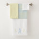 Juego de toallas de baño monograma de rayas amarillas y azules pálidas. Monograma personalizado.