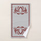 Toalla de mano: Dos flores de loto rojo burdeos con un contorno rojo burdeos sobre un fondo plateado.