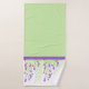 Toalla de baño con temática primaveral en color morado, blanco y verde, con gráficos de ramas de glicinia floridas en la toalla de baño. La toalla de mano es de color púrpura sólido y el paño de lavado es de color verde claro sólido. Personalizar para agregar texto a este conjunto de toallas de bonito.