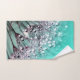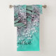 Juego de toallas personalizadas con vibrantes flores de cactus húmedas con gotas de rocío, lavanda que se refleja en las gotas de agua, hermoso fondo aqua. Puedes agregar texto personalizado o dejarlo en blanco, de cualquier manera este conjunto es hermoso y único, sería un regalo maravilloso para inaugurar una casa. La toalla de baño grande muestra dos diseños idénticos como una imagen especular más grande.
