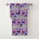 Juego de toallas de pensamiento en acuarela de color púrpura oscuro: toallas florales elegantes para decoración de baño o cocina