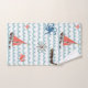Moderno, elegante, bonito y divertido juego de toallas con ilustraciones náuticos de veleros, pulpos, cangrejos, pez estrella y otros acentos náuticos.