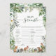 Mantén a tus huéspedes entretenidos con este juego de palabras Baby Shower Word de Woodland Animals, una actividad divertida e interactiva que incluye adorables animales de bosque de acuarela, vegetación eucaliptos y tipografía caligráfica caprichosa. Los huéspedes podrán deleitarse con las palabras relacionadas con el bebé mientras disfrutan del encanto rústico y de moda boho de este juego de bonito diseño. Perfecto para duchas de bebé modernas, neutras en cuanto al género o "Es un Chica", este juego se combina sin esfuerzo con invitaciones a duchas de bebé de bosque, decoraciones y papelería. Ya sea que esté organizando una reunión íntima o una gran celebración, este elegante juego de ducha infantil inspirado en la naturaleza le dará un toque de diversión y estilo a su evento. tecla de respuesta, TTBLOQUE → BOTELLA PAERIFCI → PACIFIER KENTLAB → BLANKET LRROSTLE → DYADD MÁS FUERTE → CRBI DADDY → CRIB BBYA RWEDPO → POLVO DE BEBÉ → WIPES RAEPDI GAB → DIAPER BAG ERISADP → DIAPERS MYMOM MOMMY OMURALF → FÓRMULA TDYDE ABER → SILLA SOTOBIE DEL OSO DE TEAS RAC → COCHE DE LACRICHAS DEL ASIENTO → RATTEL DEL CUIDADO DE LOS NIÑOS → RATTTLE SABIN → BASIN HICRA → SILLA SOTOBIE → BOOTIES GHIH CHIAR → SILLA