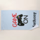 Videojuegos del amor. Haga un chapoteo este verano con esta toalla de playa personalizada. Tiene regulador del videojuego y lee el "juego en" personaliza con un nombre. Grande para un regalo de cumpleaños para ese videojugador. Modifique el color de fondo para requisitos particulares cualquier cosa que usted prefiere, apenas golpee el botón del personalizar.