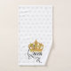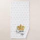 Añada un toque limpio y elegante a su cuarto de baño con esta elegante toalla. Presenta un diseño clásico personalizado con texto queen y corona dorada impresa en discreto fondo de la corona.