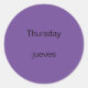 Este día de la semana los pegatinas presentan la palabra jueves junto con la traducción del inglés al español, jueves. El color de fondo es morado, que se puede personalizar. Gracias por comprar CherylsArt en Zazzle.