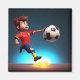 Un jugador de fútbol con una pelota de fútbol con fuego bajo su techo es fotografiado en un diseño 3D animado