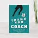 Jugador de fútbol Verde azulado Gracias tarjeta de entrenador. La carta tiene una silueta de futbolista negro con una pelota de fútbol. Gran carta para agradecer a entrenadores deportivos, entrenadores de equipos de secundaria, entrenador de mamá o papá, etc. Personalizar cualquier texto en la tarjeta. Añade el nombre del entrenador, el nombre del equipo y el año.