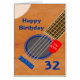 Tarjeta de cumpleaños 32 para alguien que ama la guitarra. Un primer plano de una guitarra con un plectrum colgado en las cuerdas. En el plectrum están las palabras 'You Rock'. Una tarjeta de cumpleaños para un músico que ama la guitarra.