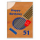 51.ª tarjeta de cumpleaños para alguien que ama la guitarra. Un primer plano de una guitarra con un plectrum colgado en las cuerdas. En el plectrum están las palabras 'You Rock'. Una tarjeta de cumpleaños para un músico que ama la guitarra.
